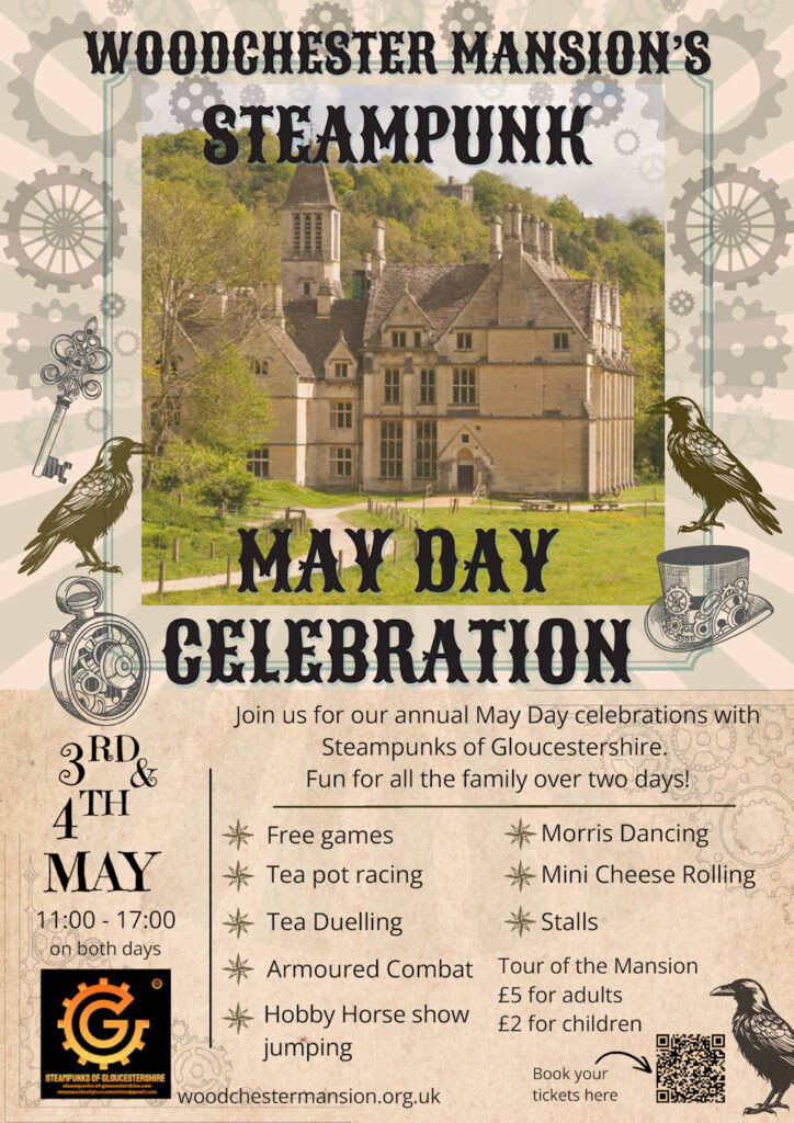 We’re looking for new volunteers – all ages, all skills welcome. This month we’re seeking helpers to man the car park for our Mayday event with the Glos STEAMPUNKS on Sun 3rd & Mon 4th May. For our open days this year we want minibus drivers, reception and ticket desk volunteers, and new tour guides. We also need volunteers for routine maintenance around the Mansion. Please come and join our friendly and enthusiastic group of local people.